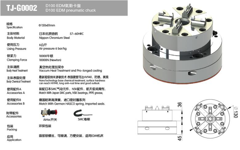D100 single head CNC pneumatic chuck is compatible with EROWA