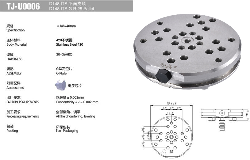 产品中心 > ITS夹头系列 > D148 ITS平面夹头 兼容EROWA